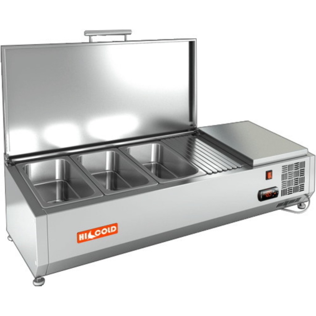 Каталог оборудования Холодильное оборудованиеВитрины для ингредиентовВитрина холодильная для ингредиентов HICOLD VRTU 1000 1/4 Витрина холодильная для ингредиентов HICOLD VRTU 1000 1/4 Код товара: 064-466 Поделиться: WhatsAppTelegram СравнитьДобавить в КПВ избранное 0 45 567 ₽ В корзину 0 шт Под заказСамовывоз сегодня бесплатно Взять в кредит Купить в лизинг Получить консультацию в WhatsApp Описание Характеристики Отзывы 0 Инструкции 2 Витрина холодильная для ингредиентов HICOLD VRTU 1000 1/4 предназначена для охлаждения, кратковременного хранения и демонстрации ингредиентов, салатов и готовых блюд на предприятиях общественного питания, кафе и торговых точках. Гастроёмкости приобретаются отдельно. Ключевые особенности: Корпус из нержавеющей стали – прочность, долговечность и лёгкость в уходе. Исполнение U с металлической крышкой – удобство эксплуатации и защита продуктов от внешнего воздействия. Электронная панель управления – точное поддержание температуры и удобство эксплуатации. Компактная высота 225 мм – оптимальное использование рабочего пространства. Вместимость: 3 гастроёмкости GN1/4, что позволяет удобно размещать различные ингредиенты, салаты или готовые блюда в компактном рабочем пространстве. Опорные ножки – обеспечивают устойчивость на столе и удобство размещения. HICOLD VRTU 1000 1/4 сочетает в себе компактность, надежность и функциональность. Она идеально подходит для профессиональной демонстрации блюд и кратковременного хранения продуктов, обеспечивая удобство работы и сохранность ингредиентов.Изображение товара, представленного на фото, может отличаться от его фактического вида. Показать все Габаритные размеры1000×325×279 ммДиапазон рабочей температурыот +2 до +7 °CДлина1000 ммГлубина325 ммВысота279 ммТип крышкиМеталлическая Гастроемкостей3 штТип гастроемкостейGN 1/4 Напряжение220 ВТип охлажденияСтатическое Материал изготовленияНержавеющая сталь ХладагентR134 Мощность0,15 кВтВес нетто27 кгВес брутто60 кгТип оттайкиРучная Габариты в упаковке1180×550×590 ммБрендHicold Оставить отзыв Еще никто не оставил отзыв на этот товар Инструкция на HICOLD VRTU 1000.pdfДекларация о соответствии.pdf Похожие товары Перейти в каталог Под заказ 50 575 ₽ Витрина для ингредиентов Polair VT2-G (1/3) с крышкой В наличии 46 639 ₽ Витрина холодильная для ингредиентов TEFCOLD VK33-120 С этим товаром покупают Под заказ 53 055 ₽ Шкаф холодильный МХМ ШХСн 0,10СК Под заказ 125 793 ₽ Шкаф холодильный универсальный Arkto V1.0-SD Под заказ 183 209 ₽ Шкаф морозильный МХМ Капри 1,5 НВ нержавейка В наличии 92 813 ₽ Шкаф холодильный среднетемпературный Arkto R0.5-G В наличии 168 300 ₽ Шкаф холодильный универсальный Carboma V1400 Под заказ 103 790 ₽ Шкаф морозильный Рапсодия R 700 LS В наличии 62 337 ₽ Шкаф холодильный Kayman К500-Х Под заказ 78 694 ₽ Шкаф холодильный универсальный МХМ Капри П-390 УСК (ВО, контроллер)