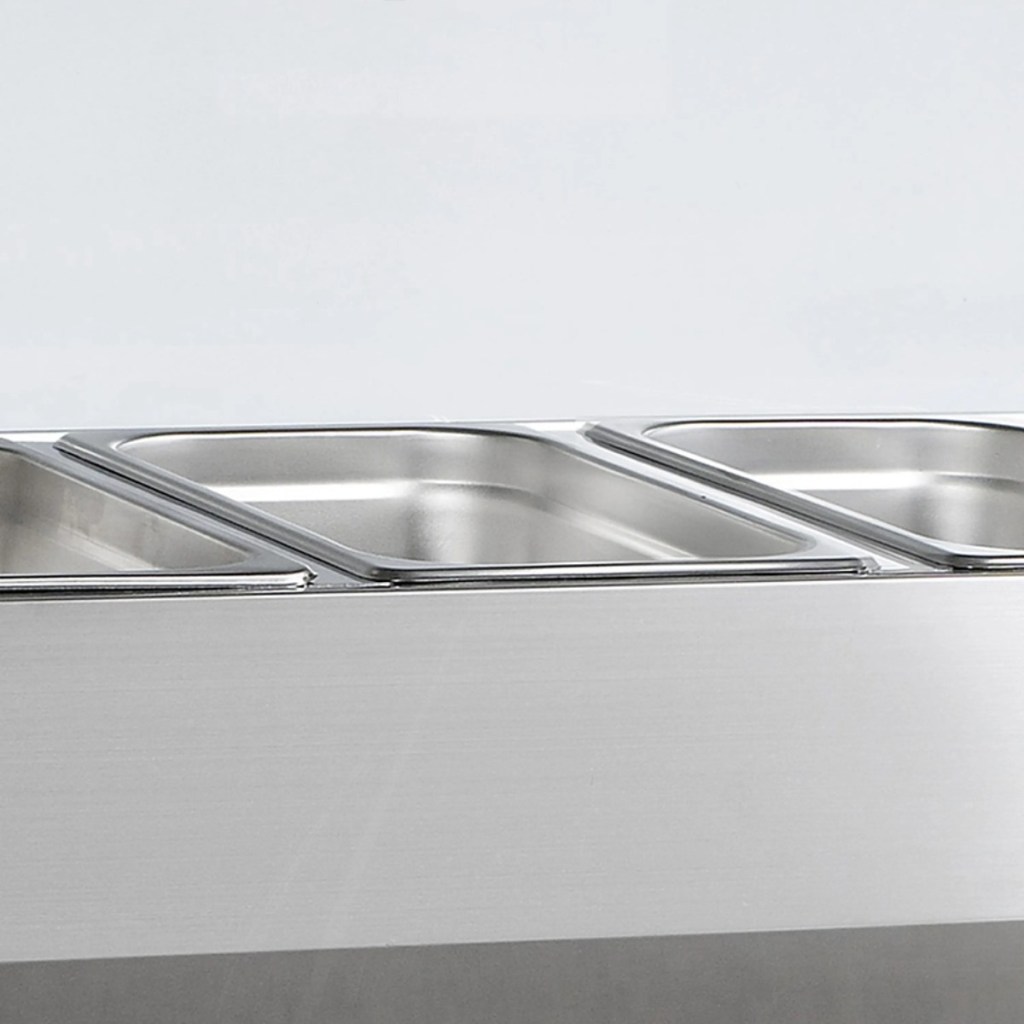 Каталог оборудования Холодильное оборудованиеВитрины для ингредиентовВитрина холодильная для ингредиентов TEFCOLD VK33-120 Витрина холодильная для ингредиентов TEFCOLD VK33-120 Код товара: 010-380 Поделиться: WhatsAppTelegram СравнитьДобавить в КПВ избранное 0 72 104 ₽ В корзину 0 шт В наличииСамовывоз сегодня бесплатно Взять в кредит Купить в лизинг Получить консультацию в Max Описание Характеристики Отзывы 0 Витрина холодильная для ингредиентов TEFCOLD VK33-120 предназначена для кратковременного хранения и демонстрации готовых салатов, мясных и рыбных закусок, а также ингредиентов на предприятиях общественного питания и торговли. Корпус и внутренняя обшивка выполнены из нержавеющей стали, что обеспечивает долговечность и легкость очистки. Гастроемкости в комплект не входят. Особенности: Статическое охлаждение — равномерная температура, подходит для деликатных продуктов. Механическое размораживание — надежное удаление наледи без вмешательства. Хладагент R600a — экологичный и энергоэффективный. Электронный термостат и градусник — точное регулирование и контроль температуры. Гнутый стеклянный колпак — обзор и защита продукции. Регулируемые ножки — удобная установка и устойчивость. Климатический класс 4 — работа при температуре до +32°C. Вместимость — 5×GN 1/4, глубина 150 мм, удобно для салатов и закусок. Перегородки — 4 длинные и 1 короткая, поддерживают порядок продуктов. Уровень шума — 47 дБ, почти бесшумная работа. Хладагент — 0,04 кг, экономичное и эффективное охлаждение. Внутренние размеры — 845×245×155 мм, компактное размещение емкостей. TEFCOLD VK33-120 - компактная, надежная и гигиеничная витрина для демонстрации и кратковременного хранения продуктов, обеспечивающая удобство эксплуатации и безопасное хранение деликатных ингредиентов.Изображение товара, представленного на фото, может отличаться от его фактического вида. Показать все Габаритные размеры1200×335×435 ммДиапазон рабочей температурыот +2 до +10 °CДлина1200 ммГлубина335 ммВысота435 ммТип крышкиСтеклянная Гастроемкостей5 штТип гастроемкостейGN 1/4 Мощность0,112 ВтНапряжение220 ВТип охлажденияСтатическое Климатический класс4 ХладагентR600a Вес нетто40 кгВес брутто45 кгТип оттайкиРучная Габариты в упаковке1280×380×310 ммБрендTefcold Оставить отзыв Еще никто не оставил отзыв на этот товар Похожие товары Перейти в каталог Под заказ Цена по запросу Витрина для ингредиентов Polair VT2-G (1/3) открытого типа Под заказ 43 000 ₽ Витрина для ингредиентов Carboma A40 SM 1,2 VT2-G С этим товаром покупают Под заказ 109 342 ₽ Стол морозильный HiCold GN 1/BT В наличии 52 266 ₽ Льдогенератор Rosso BY-550F Под заказ 126 251 ₽ Шкаф холодильный Abat ШХс-0,7-02 Ранее просмотрено Под заказ 5 646 ₽ ПВХ завеса Север 400х4 перекр. 150 мм Под заказ 107 944 ₽ Стол холодильный среднетемпературный HURAKAN HKN-GNL3TN-222 Под заказ 125 790 ₽ Шкаф холодильный Abat ШХ-0,7