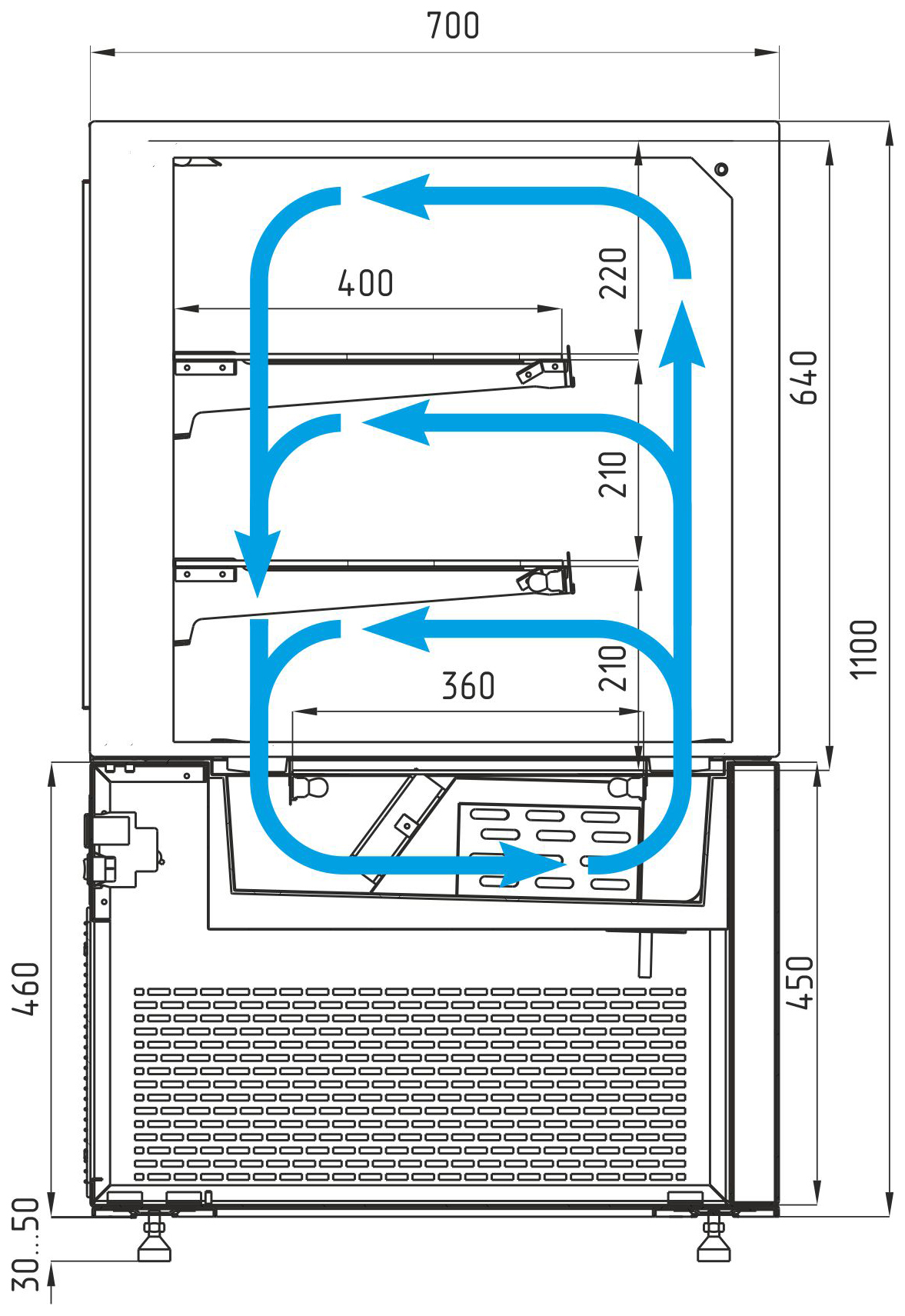 Корпус витрины выполнен из стали и пластика, оснащён термоизоляцией из пенополиуретана для эффективного поддержания заданной температуры. Прочная конструкция сочетается с современным дизайном, а матовая стеклянная зона выкладки подчёркивает аккуратность и чистоту подачи продукции.