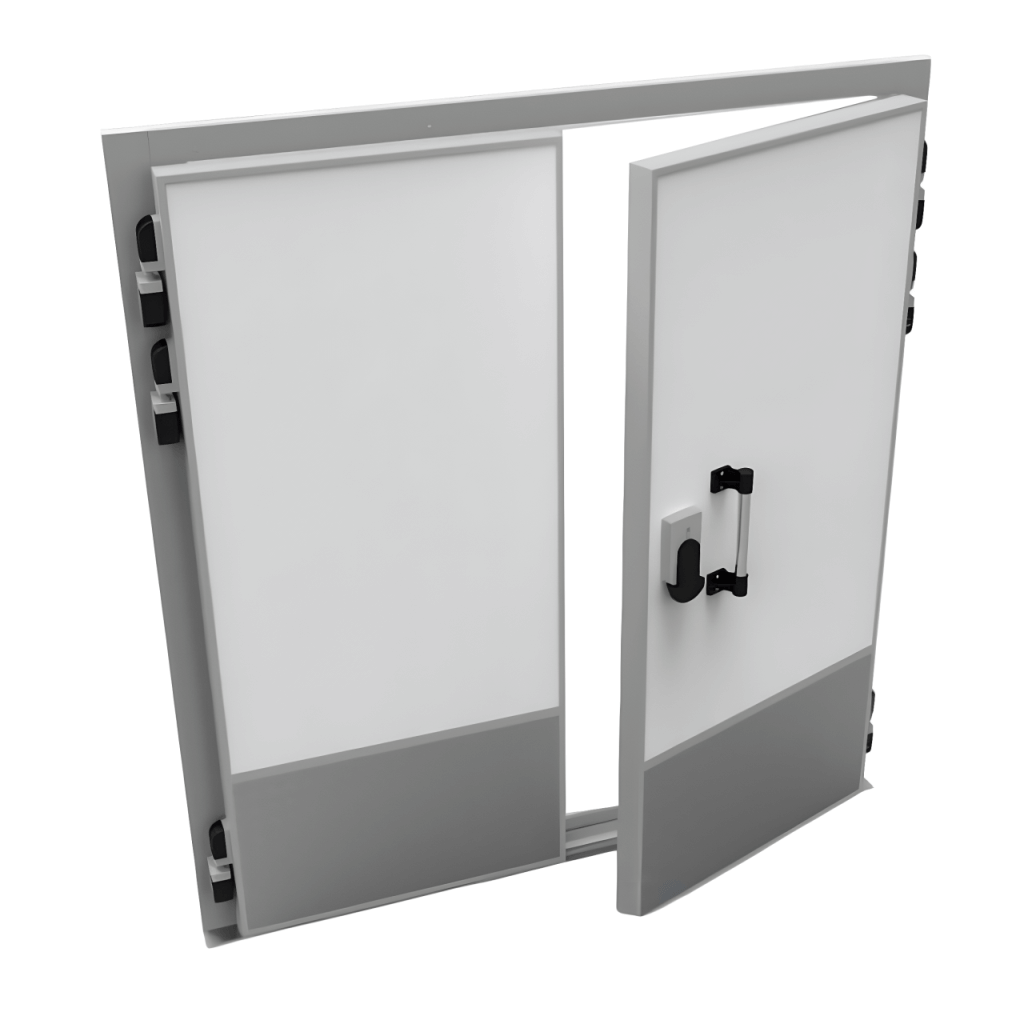 Каталог оборудования Холодильное оборудованиеДвери для холодильных камерРаспашные двустворчатые холодильные двериДверь холодильная распашная двустворчатая НТ-РДД-1600*2400/120 Дверь холодильная распашная двустворчатая НТ-РДД-1600*2400/120 Код товара: 065-774 Поделиться: WhatsAppTelegram СравнитьДобавить в КПВ избранное 0 111 680 ₽ В корзину 0 шт Под заказСамовывоз сегодня бесплатно Взять в кредит Купить в лизинг Получить консультацию в Max Описание Характеристики Отзывы 0 Инструкции 3 Холодильная распашная двустворчатая дверь НТ-РДД-1600*2400/120 используется в средне- и низкотемпературных промышленных холодильных камерах, складах и холодильных терминалах, которые используются для хранения и охлаждения продукции. Преимущества двери: Высокая теплоизоляция: Толщина двери 120 мм и наполнитель из пенополиуретана плотностью 45-50 кг/м³ обеспечивают эффективную теплоизоляцию, минимизируя потери энергии. Герметичность: Одинарный контур съемного резинового уплотнения с сотовой структурой исключает образование «мостиков холода», обеспечивая плотное прилегание и защиту от теплопотерь. Температурный режим: Двери предназначены для эксплуатации при температурах от -5°С до -20°С, что делает их идеальными для среднетемпературных условий. Долговечность: Поверхность двери выполнена из оцинкованной стали толщиной 0,45-0,5 мм с полиэфирным покрытием белого цвета, устойчивым к коррозии и механическим повреждениям. Полотно обрамлено алюминиевым профилем, что придает конструкции дополнительную прочность и эстетичный внешний вид. Безопасность и удобство: Двери оснащены ручкой с замком итальянского производства (МТН) и устройством аварийного открывания изнутри, что гарантирует безопасность персонала в случае случайного запирания. Регулируемые петли позволяют точно настроить положение двери по вертикали и горизонтали, обеспечивая плотное прилегание и удобство эксплуатации. Эта дверь – идеальное решение для объектов, где требуется поддержание стабильных низких или средних температур. Благодаря высокой теплоизоляции, герметичности и надежной конструкции, она обеспечивает энергосбережение и оптимальные условия хранения продукции. Это надежный выбор для тех, кто ценит качество, долговечность и энергоэффективность. Изображение товара, представленного на фото, может отличаться от его фактического вида. Показать все Ширина светового проема1600 ммВысота светового проема2400 ммТемпературный режимНизкотемпературный (до -25) Толщина двери120 ммБрендСевер Оставить отзыв Еще никто не оставил отзыв на этот товар Чертеж двери для холодильной камеры.jpgСхема монтажа двери для холодильной камеры.jpgБуклет двери изотермические и технологические ТМ Север.pdf Похожие товары Перейти в каталог Под заказ 91 518 ₽ Дверь холодильная распашная двустворчатая НТ-РДД-1600*1856/80 Под заказ 94 801 ₽ Дверь холодильная распашная двустворчатая НТ-РДД-1800*1856/80 Под заказ 98 077 ₽ Дверь холодильная распашная двустворчатая НТ-РДД-2000*1856/80 Под заказ 102 985 ₽ Дверь холодильная распашная двустворчатая НТ-РДД-2200*1856/80 С этим товаром покупают Под заказ 173 245 ₽ Камера холодильная Polair КХН-1,28 Minicella ММ с агрегатом Под заказ 109 622 ₽ Моноблок холодильный среднетемпературный Polair MM115ST В наличии 82 430 ₽ Сплит-система холодильная среднетемпературная Polair SM 111 S Под заказ 379 313 ₽ Компрессорно-конденсаторный агрегат POLAIR CUB - LLZ015 Под з