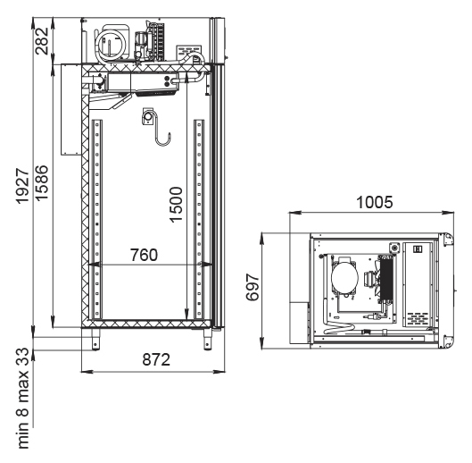 Каталог оборудования Холодильное оборудованиеШкафы холодильныеСпециализированные холодильные шкафыШкаф холодильный для вызревания мяса Polair CS107 Meat со стеклом (Тип 1) Шкаф холодильный для вызревания мяса Polair CS107 Meat со стеклом (Тип 1) Код товара: 062-627 Поделиться: WhatsAppTelegram СравнитьДобавить в КПВ избранное 0 399 500 ₽ В корзину 0 шт Под заказСамовывоз сегодня бесплатно Взять в кредит Купить в лизинг Получить консультацию в WhatsApp Описание Характеристики Отзывы 0 Инструкции 5 Шкаф холодильный для вызревания мяса Polair CS107 Meat со стеклом (Тип 1) предназначен для создания идеальных условий хранения и дозревания мяса на предприятиях общественного питания и торговли. Монолитный цельнозаливной корпус выполнен из нержавеющей стали как снаружи, так и внутри (за исключением задней стенки), что гарантирует высокую прочность, устойчивость к коррозии и простоту ухода. Дверь оснащена стеклопакетом для визуального контроля продукции. Оборудование рассчитано на эксплуатацию при температуре окружающей среды до +40 °С. Особенности: Верхнее расположение агрегата, обеспечивающее удобный доступ и оптимальную циркуляцию воздуха Многофункциональная русифицированная панель управления с дисплеем диагональю 5" для точной настройки режимов Возможность создания и сохранения собственных программ, что позволяет адаптировать условия хранения под разные виды мяса Штанга для подвеса крупных кусков мяса (максимальная нагрузка 80 кг) и 2 перфорированные полки (нагрузка до 40 кг на каждую), обеспечивающие гибкую организацию внутреннего пространства Встроенный ультразвуковой увлажнитель (необходимо подключение к системе очищенной воды и централизованной канализации) для поддержания оптимального уровня влажности UV-лампа для обеззараживания воздуха, минимизирующая риск появления нежелательной микрофлоры Распашная дверь с заливной теплоизоляцией, встроенной ручкой и сменным магнитным уплотнителем для надежного закрытия Отключаемая LED-подсветка, создающая комфортные условия обзора внутри камеры Штампованное углубление в дне корпуса для удобства уборки Педаль для открывания двери без помощи рук Толщина стенок корпуса: 43 мм Polair CS107 Meat со стеклом (Тип 1) — это профессиональное решение для хранения и созревания мяса, отвечающее строгим требованиям пищевых производств. Продуманная конструкция, функционал управления климатом, возможность подвеса и хранения больших кусков мяса, а также дополнительные системы (увлажнитель, UV-обеззараживание) позволяют обеспечить высокое качество продукции и повысить эффективность работы предприятия.Изображение товара, представленного на фото, может отличаться от его фактического вида. Показать все Габаритные размеры697×1005×1960 ммДиапазон рабочей температурыот -2 до +30 °CДлина697 ммШирина1005 ммВысота1960 ммОбъём700 лКол-во дверей1 Тип двериСтеклянная Количество полок2 штДопустимая нагрузка на полку40 кгУровень влажностиот 60 до 95 %Холодильный агрегатВстроенный Тип оттайкиАвтоматическая Тип охлажденияДинамическое ПодсветкаЕсть UV-лампаЕсть ХладагентR290 Вес нетто160 кгВес брутто190 кгБрендPolairВсе специализированные холодильные шкафы Из нержавейкиВсе специализированные холодильные шкафы Стеклянная дверь Оставить отзыв Еще никто не оставил отзыв на этот товар Схема POLAIR CS107-Meat.jpgИнструкция на POLAIR CS107-Meat.pdfБрошюра на POLAIR CS107-Meat.pdfДеклар
