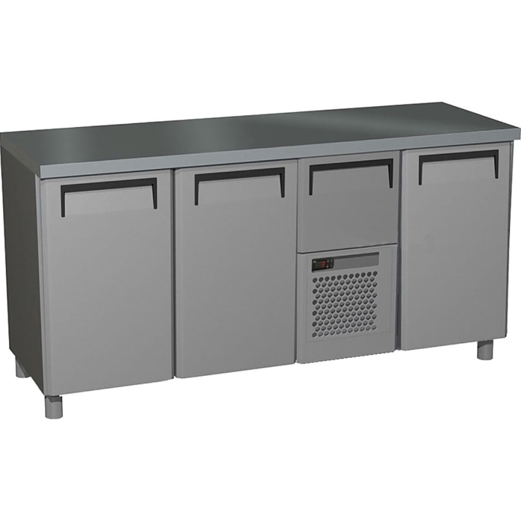 Carboma T57 M3-1 9006-29 корпус серый, с бортом, планка (BAR-360) сочетает рабочую поверхность с охлаждаемым отсеком, обеспечивая удобство приготовления блюд и хранения продуктов. Идеально подходит для кафе, ресторанов и пекарен, где важны функциональность и долговечность оборудования.