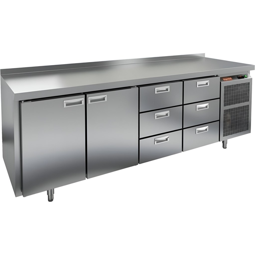 Каталог оборудования Холодильное оборудованиеСтолы охлаждаемыеСтолы холодильные среднетемпературныеСтол холодильный среднетемпературный HiCold GN 1133/TN Стол холодильный среднетемпературный HiCold GN 1133/TN Код товара: 001-334 Поделиться: WhatsAppTelegram СравнитьДобавить в КПВ избранное 0 259 192 ₽ В корзину 0 шт Под заказСамовывоз сегодня бесплатно Взять в кредит Купить в лизинг Получить консультацию в WhatsApp Описание Характеристики Отзывы 0 Инструкции 1 Стол холодильный среднетемпературный HiCold GN 1133/TN предназначен для обработки ингредиентов и кратковременного хранения скоропортящихся продуктов и напитков на предприятиях общественного питания и торговли. Модель оснащена удобной электронной панелью управления. Корпус и столешница выполнены из прочной и гигиеничной нержавеющей стали. В комплект входят 2 полки для размещения продуктов. Особенности: 2 распашные двери обеспечивают быстрый и удобный доступ к охлаждаемому отделению. 6 выдвижных секций позволяют рационально организовать внутреннее пространство и ускорить доступ к ингредиентам. Автоматические доводчики дверей с фиксатором открытого положения повышают комфорт при эксплуатации. Легкозаменяемые магнитные уплотнители обеспечивают надёжную герметичность и упрощают техническое обслуживание. Регулируемые по высоте ножки дают возможность выровнять стол на неровной поверхности. Толщина столешницы — 50 мм, что делает её устойчивой к механическим нагрузкам. Высота борта — 50 мм предотвращает скатывание продуктов и жидкостей с поверхности. Толщина теплоизоляции — 50 мм, что способствует поддержанию стабильной температуры и снижению энергозатрат. Диапазон температуры окружающего воздуха — от 12 до 37 °C, что делает модель универсальной для различных условий эксплуатации. HiCold GN 1133/TN — это практичный и надёжный холодильный стол, сочетающий удобство работы, продуманную организацию внутреннего пространства и высокую энергоэффективность. Идеально подходит для профессиональных кухонь.Изображение товара, представленного на фото, может отличаться от его фактического вида. Показать все Габаритные размеры2280×700×850 ммДиапазон рабочей температурыот -2 до +10 °CРасположение агрегатаБоковое Материал столешницыНержавеющая Тип столаС дверьми и ящиками Тип двериГлухая Объём660 лКоличество дверей2 штКоличество полок2 штКоличество ящиков6 штРазмер полки530×325 ммНапряжение220 ВМощность0,48 кВтТип охлажденияДинамический Тип оттайкиАвтоматическая СтолешницаС бортом Вес нетто212 кгВес брутто236 кгБрендHicoldВсе холодильные столы HicoldВсе нержавеющие холодильные столы Все холодильные столы с бортом Оставить отзыв Еще никто не оставил отзыв на этот товар Паспорт на HICOLD GN 1133/TN.pdf Похожие товары Перейти в каталог В наличии 139 401 ₽ Стол холодильный среднетемпературный HiCold GN 1111 BR2 TN В наличии 113 121 ₽ Стол холодильный среднетемпературный HiCold GN 1111/TN W Под заказ 148 851 ₽ Стол холодильный среднетемпературный HiCold SN 1111/TN W В наличии 139 583 ₽ Стол холодильный среднетемпературный Cooleq GN4200TN с бортом С этим товаром покупают Под заказ 203 827 ₽ Шкаф морозильный Abat ШХн-1,4 Ранее просмотрено Под заказ 304 189 ₽ Сплит-система холодильная среднетемпературная Intercold MCM 454 FT (опция -10° С) Под заказ 133 285 ₽ Моноблок холодильный низкотемпературный Intercold МLCM-109 FT T (опция -30° С) Под заказ 116 995 ₽ Моноблок холодильный низкотемпературный Intercold MLCM-109 FT T (оп