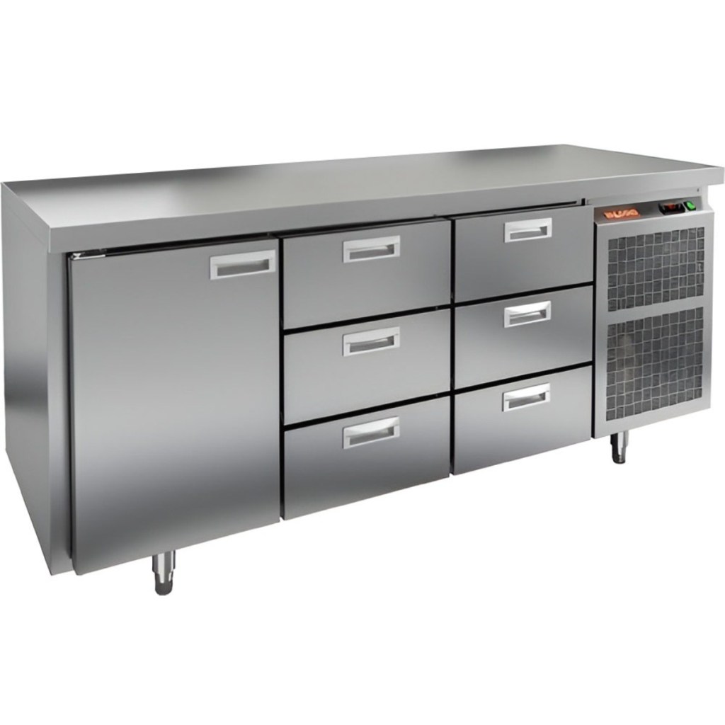 Каталог оборудования Холодильное оборудованиеСтолы охлаждаемыеСтолы морозильные низкотемпературныеСтол морозильный HiCold GN 133/BT O Стол морозильный HiCold GN 133/BT O Код товара: 065-067 Поделиться: WhatsAppTelegram СравнитьДобавить в КПВ избранное 0 266 752 ₽ В корзину 0 шт Под заказСамовывоз сегодня бесплатно Взять в кредит Купить в лизинг Получить консультацию в WhatsApp Описание Характеристики Отзывы 0 Инструкции 2 Стол морозильный HiCold GN133/BT О сочетает в себе удобную рабочую поверхность и вместительную морозильную камеру. Верхняя часть используется для раскатки теста и подготовки ингредиентов, а внутренняя камера предназначена для заморозки и хранения продуктов и полуфабрикатов. Стол оснащен одной глухой дверяью и шестью выдвижными ящиками, что обеспечивает удобный доступ к продуктам и рациональное использование внутреннего пространства. Оборудование идеально подходит для предприятий общественного питания. Особенности: Совместимость с GN-стандартом — полки, направляющие и стойки полностью интегрируются с профессиональным кухонным оборудованием. Прочный цельнозаливной корпус из нержавеющей стали с 50 мм изоляцией обеспечивает высокую герметичность и жесткость конструкции. Столешница без борта для удобной работы с крупными и длинными заготовками. Электронный блок управления с повышенной надежностью и несколькими режимами оттаивания. Вентилятор увеличенной мощности и принудительная вентиляция по всему объему камеры для равномерного и быстрого охлаждения. Интеллектуальная система размораживания и термическое выпаривание конденсата снижают затраты на обслуживание. Экономичный компрессор нового поколения снижает энергопотребление. Облегченный доступ к агрегату упрощает сервисное обслуживание. Двери с доводчиками и ПЭН предотвращают примерзание и обеспечивают плотное закрытие. Регулируемые по высоте ножки для устойчивости на разных поверхностях. Максимальная нагрузка на полку — 50 кг. Высота борта рабочей поверхности — 50 мм. Температура окружающей среды: 12–32 °C. HiCold GN133/BT О — это надежный и функциональный морозильный стол, обеспечивающий удобство работы и эффективное хранение продуктов. Он идеально подходит для интенсивной эксплуатации на профессиональных кухнях ресторанов, кафе и предприятий общественного питания.Изображение товара, представленного на фото, может отличаться от его фактического вида. Показать все Габаритные размеры1835×700×850 ммДиапазон рабочей температурыот -18 до -10 °CРасположение агрегатаБоковое Материал столешницыНержавеющая Тип столаС дверьми и ящиками Тип двериГлухая Объём505 лКоличество дверей1 штКоличество полок1 штКоличество ящиков6 штНапряжение220 ВМощность0,6 кВтТип охлажденияДинамический Тип оттайкиАвтоматическая СтолешницаБзе борта Габариты в упаковке200×845×995 ммВес нетто128 кгВес брутто148 кгБрендHicoldВсе морозильные столы HicoldВсе морозильные столы без бортаВсе морозильные столы с бортом Оставить отзыв Еще никто не оставил отзыв на этот товар Паспорт на HICOLD GN133/BT О.pdfДекларация о соответствии.pdf Похожие товары Перейти в каталог Под заказ 169 732 ₽ Стол морозильный Abat СХН-70-02 без борта (дверь, дверь, дверь) Под заказ 156 861 ₽ Стол морозильный HiCold GN 111/BT W Ранее просмотрено Под заказ 220 852 ₽ Стол морозильный HiCold GN 113/BT O