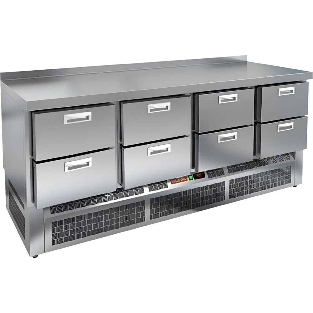 Каталог оборудования Холодильное оборудованиеСтолы охлаждаемыеСтолы морозильные низкотемпературныеСтол морозильный HiCold SNE 2222/BT Стол морозильный HiCold SNE 2222/BT Код товара: 065-190 Поделиться: WhatsAppTelegram СравнитьДобавить в КПВ избранное 0 308 782 ₽ В корзину 0 шт Под заказСамовывоз сегодня бесплатно Взять в кредит Купить в лизинг Получить консультацию в Max Описание Характеристики Отзывы 0 Инструкции 2 Стол морозильный HiCold SNE 2222/BT предназначен для раскатки теста, обработки ингредиентов, заморозки и хранения продуктов, полуфабрикатов и мороженого на предприятиях общественного питания и торговли. Корпус выполнен из цельнозалитой нержавеющей стали с 50-миллиметровой теплоизоляцией, что обеспечивает высокую герметичность и прочность конструкции. Преимущества: Надёжный электронный блок управления с несколькими режимами оттаивания. Современная и экономичная модель компрессора для эффективной работы. Усиленный вентилятор обеспечивает быструю и равномерную циркуляцию воздуха по всему объёму. Интеллектуальная система размораживания для автоматического ухода за оборудованием. Термическое выпаривание конденсата предотвращает скопление влаги. Проволочный электронагреватель (ПЭН) по контуру стола не допускает примерзания ящиков. Регулируемые по высоте ножки для удобной и устойчивой установки. Облегчённый доступ к агрегату упрощает сервисное обслуживание. Полки выдерживают нагрузку до 50 кг, а высокий борт (50 мм) предотвращает падение продуктов. Рабочая температура в диапазоне от +12 до +32 °C позволяет использовать стол в разных условиях. HiCold SNE 2222/BT — это надёжное и функциональное оборудование, которое сочетает в себе удобство работы и эффективное хранение продуктов, обеспечивая стабильное и экономичное охлаждение на профессиональной кухне.Изображение товара, представленного на фото, может отличаться от его фактического вида. Показать все Габаритные размеры1970×600×850 ммДиапазон рабочей температурыот -18 до -10 °CРасположение агрегатаНижнее Материал столешницыНержавеющая Тип столаС ящиками Объём430 лКоличество ящиков8 штНапряжение220 ВМощность0,7 кВтТип охлажденияДинамический Тип оттайкиАвтоматическая СтолешницаС бортом Вес нетто160 кгВес брутто130 кгБрендHicoldВсе морозильные столы HicoldВсе морозильные столы с бортом Оставить отзыв Еще никто не оставил отзыв на этот товар Паспорт на HICOLD SNE 2222/BT.pdfДекларация о соответствии.pdf Ранее просмотрено Под заказ 318 861 ₽ Стол морозильный HiCold GN 1133 BR2 BT Под заказ 202 491 ₽ Стол морозильный HiCold GN 22/BT З
