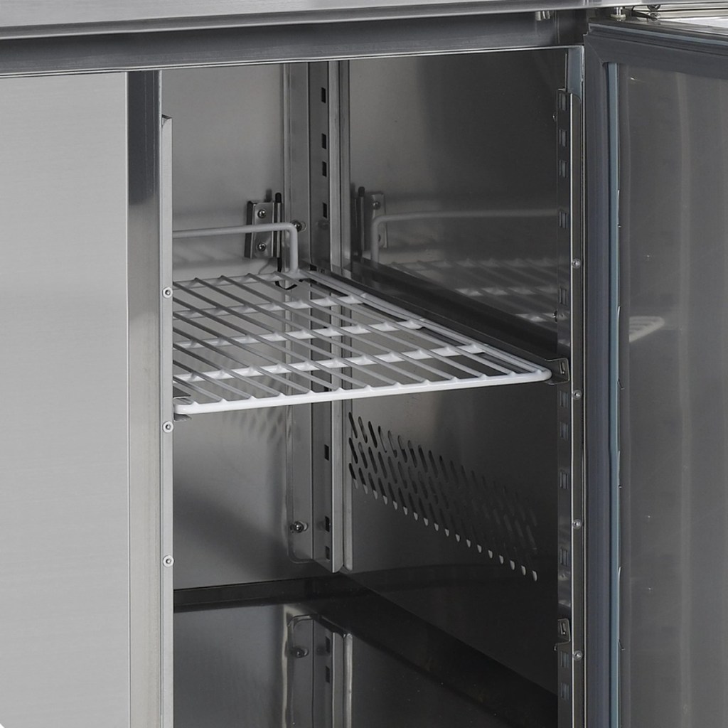 Стол морозильный TEFCOLD CF7310 — профессиональное оборудование для раскатки теста, обработки, заморозки и долговременного хранения продуктов, полуфабрикатов, напитков и мороженого на предприятиях общественного питания и торговли. Корпус и внутренняя отделка выполнены из нержавеющей стали AISI 304, что обеспечивает долговечность, гигиеничность и лёгкость ухода.