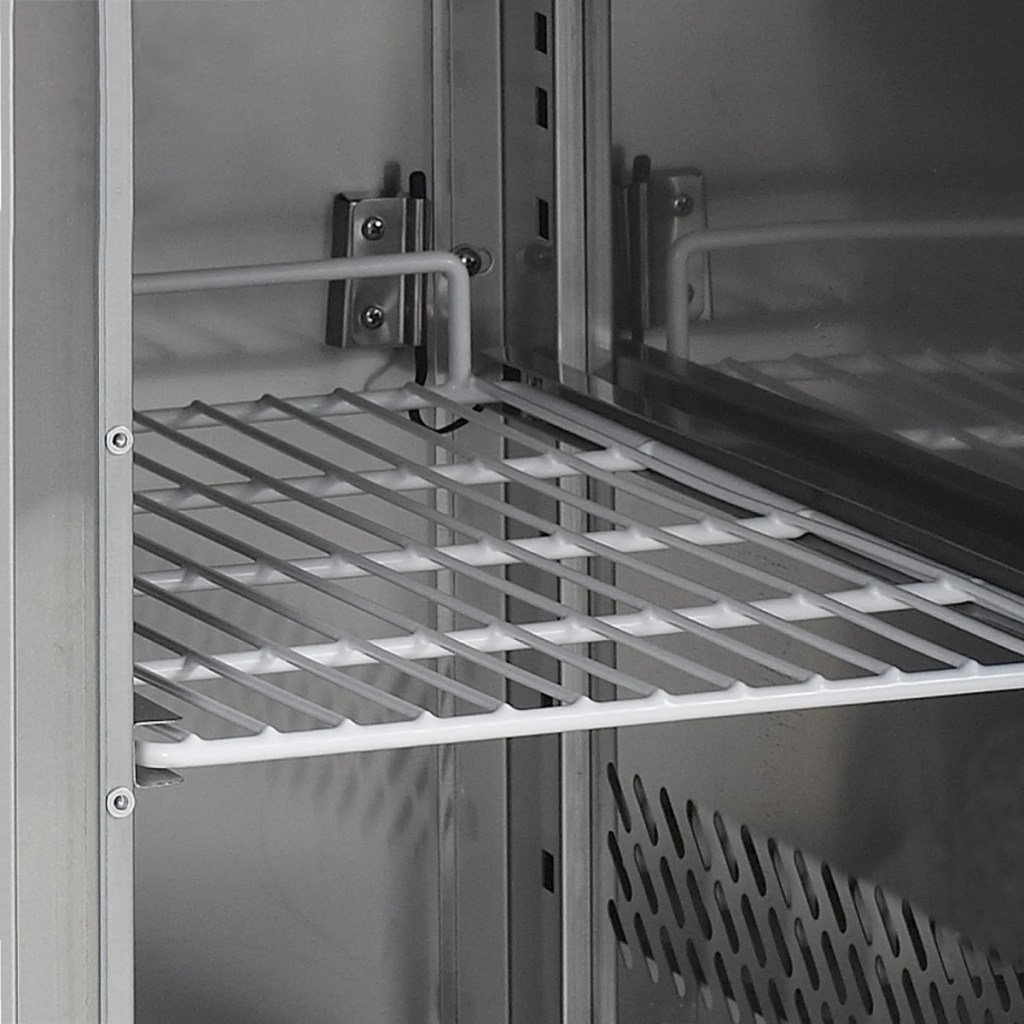 Каталог оборудования Холодильное оборудованиеСтолы охлаждаемыеСтолы морозильные низкотемпературныеСтол морозильный TEFCOLD SA910BT Стол морозильный TEFCOLD SA910BT Код товара: 010-255 Поделиться: WhatsAppTelegram СравнитьДобавить в КПВ избранное 0 116 316 ₽ В корзину 0 шт Под заказСамовывоз сегодня бесплатно Взять в кредит Купить в лизинг Получить консультацию в WhatsApp Описание Характеристики Отзывы 0 Инструкции 1 Стол морозильный TEFCOLD SA910BT — профессиональное оборудование для раскатки теста, обработки, заморозки и долговременного хранения продуктов, полуфабрикатов, напитков и мороженого на предприятиях общественного питания и торговли. Корпус и внутренняя отделка выполнены из нержавеющей стали AISI 304, что обеспечивает долговечность, гигиеничность и лёгкость ухода. Особенности модели: Статическое охлаждение — равномерная температура по всему объёму Автоматическое размораживание — поддержание стабильного режима без образования наледи Электронный термостат и градусник — точный контроль температуры Хладагент R134a, подзарядка — 0,165 кг 2 полки для удобной организации внутреннего пространства Регулируемые по высоте ножки — устойчивость на любой поверхности Климатический класс 4 — работа при температуре до +30 °C Размеры полок: 530 × 325 мм Внутренние размеры: 830 × 515 × 500 мм Потребляемая мощность: 0,338 кВт Энергопотребление: 8,13 кВт/сутки Уровень шума: 42 дБ TEFCOLD SA910BT — надёжный морозильный стол для профессиональных кухонь и предприятий общественного питания. Модель сочетает рабочую поверхность для раскатки теста, эффективное охлаждаемое пространство и долговременное хранение продуктов, обеспечивая удобство работы и сохранность ингредиентов.Изображение товара, представленного на фото, может отличаться от его фактического вида. Показать все Габаритные размеры943×700×877 ммДиапазон рабочей температурыот -20 до -10 °CРасположение агрегатаНижнее Материал столешницыНержавеющая Тип столаС дверьми Тип двериГлухая Общий объем260 лПолезный объем230 лКоличество дверей2 штНапряжение230 ВРасход электроэнергии в сутки6,95 кВт/сутТип охлажденияСтатическое Тип оттайкиАвтоматическая Климатический класс4 ХладагентR134а СтолешницаБез борта Габариты в упаковке980×770×1040 ммВес нетто86 кгВес брутто96 кгБрендTefcold Оставить отзыв Еще никто не оставил отзыв на этот товар Инструкция на TEFCOLD SA910BT.pdf Похожие товары Перейти в каталог Под заказ 132 741 ₽ Стол морозильный Abat СХН-60-01 с бортом (дверь, дверь) В наличии 79 865 ₽ Стол морозильный Cooleq SS45BT Под заказ 108 783 ₽ Стол морозильный HURAKAN HKN-GN2BT Под заказ 132 842 ₽ Стол морозильный Abat СХН-60-01 без борта (дверь, дверь) С этим товаром покупают Под заказ 109 950 ₽ Шкаф холодильный HURAKAN HKN-GX650TN Под заказ 140 250 ₽ Жарочная поверхность Аbat ГАКО-80/2Н-Ч-00 В наличии 60 020 ₽ Индукционная плита HURAKAN HKN-ICF35DX47