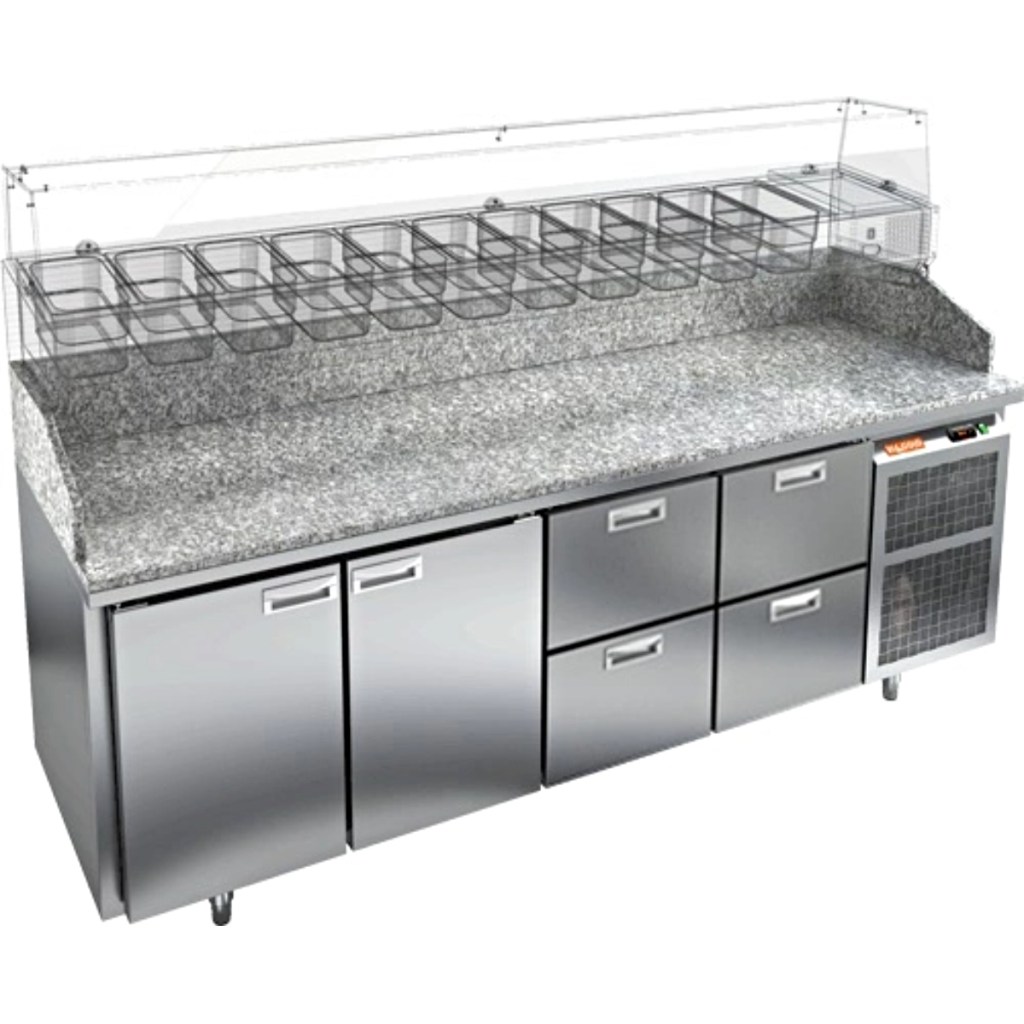 Каталог оборудования Холодильное оборудованиеСтолы охлаждаемыеСтолы холодильные для пиццыСтол холодильный для пиццы HiCold PZ3-1122/GN камень Стол холодильный для пиццы HiCold PZ3-1122/GN камень Код товара: 065-014 Поделиться: WhatsAppTelegram СравнитьДобавить в КПВ избранное 0 345 321 ₽ В корзину 0 шт Под заказСамовывоз сегодня бесплатно Взять в кредит Купить в лизинг Получить консультацию в WhatsApp Описание Характеристики Отзывы 0 Стол холодильный для пиццы HiCold PZE3-221/GN камень предназначен для использования в пиццериях, кафе, магазинах и ресторанах. Он идеально подходит для раскатки теста, подготовки ингредиентов и кратковременного хранения скоропортящихся продуктов. Витрина приобретается отдельно. Стол сочетает корпус из нержавеющей стали и гранитную столешницу, которая устойчива к механическим и температурным нагрузкам и удобна в работе с тестом. Такая конструкция обеспечивает долговечность, гигиеничность и простоту ухода. Особенности модели: Охлаждение: динамическое — равномерное поддержание температуры Оттайка: автоматическая — удобство и экономия времени Панель управления: электронная — точная настройка температуры Ножки: регулируемые по высоте — устойчивость на неровной поверхности Двери: 1 глухая дверца с автоматическими доводчиками и фиксатором открытого положения Ящики: 4 выдвижных ящика — удобное хранение ингредиентов Уплотнители: легкозаменяемые магнитные — герметичность и простота обслуживания Толщина теплоизоляции: 50 мм — сохранение холода и энергоэффективность Рабочая поверхность: глубина 680 мм — удобство работы HiCold PZE3-221/GN камень— это надёжный и функциональный холодильный стол для пиццы, который сочетает прочность, эргономику и эффективное охлаждение. Благодаря гранитной столешнице, корпусу из нержавеющей стали, двум глухим дверям и двум выдвижным ящикам он станет универсальным решением для профессиональной кухни. Изображение товара, представленного на фото, может отличаться от его фактического вида. Показать все Габаритные размеры2280×700×1050 ммДиапазон рабочей температурыот +2 до +10 °CРасположение агрегатаБоковое Материал столешницыГранитная Тип столаС дверьми и ящиками Тип двериГлухая Объём660 лКоличество дверей2 штКоличество ящиков4 штРазмер полки530×325 ммНапряжение220 ВМощность0,5 кВтТип охлажденияДинамическое Тип оттайкиАвтоматическая Габариты в упаковке2430×850×1140 ммВес нетто270 кгВес брутто320 кгБрендHicoldВсе холодильные столы для пиццы HicoldВсе нержавеющие холодильные столы для пиццы Оставить отзыв Еще никто не оставил отзыв на этот товар Ранее просмотрено Под заказ 242 721 ₽ Стол холодильный для пиццы HiCold PZE2-1111/GN (1/6) М