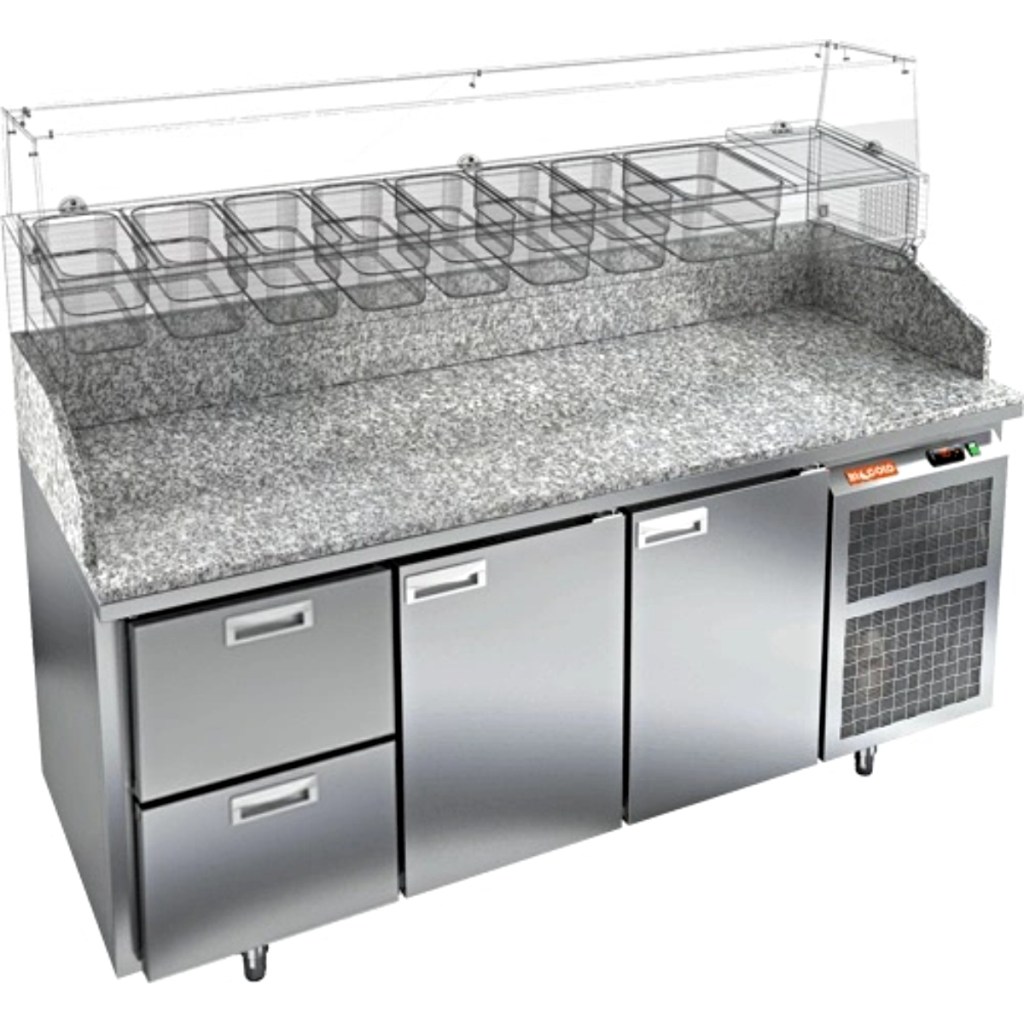 Каталог оборудования Холодильное оборудованиеСтолы охлаждаемыеСтолы холодильные для пиццыСтол холодильный для пиццы HiCold PZ3-211/GN камень Стол холодильный для пиццы HiCold PZ3-211/GN камень Код товара: 065-010 Поделиться: WhatsAppTelegram СравнитьДобавить в КПВ избранное 0 297 352 ₽ В корзину 0 шт Под заказСамовывоз сегодня бесплатно Взять в кредит Купить в лизинг Получить консультацию в WhatsApp Описание Характеристики Отзывы 0 Стол холодильный для пиццы HiCold PZE3-211/GN камень предназначен для использования в пиццериях, кафе, магазинах и ресторанах. Он идеально подходит для раскатки теста, подготовки ингредиентов и кратковременного хранения скоропортящихся продуктов. Витрина приобретается отдельно. Стол сочетает корпус из нержавеющей стали и гранитную столешницу, которая устойчива к механическим и температурным нагрузкам и удобна в работе с тестом. Такая конструкция обеспечивает долговечность, гигиеничность и простоту ухода. Особенности модели: Охлаждение: динамическое — равномерное поддержание температуры Оттайка: автоматическая — удобство и экономия времени Панель управления: электронная — точная настройка температуры Ножки: регулируемые по высоте — устойчивость на неровной поверхности Двери: 2 глухие двери с автоматическими доводчиками и фиксатором открытого положения Ящики: 2 выдвижных ящика — удобное хранение ингредиентов Уплотнители: легкозаменяемые магнитные — герметичность и простота обслуживания Толщина теплоизоляции: 50 мм — сохранение холода и энергоэффективность Рабочая поверхность: глубина 680 мм — удобство работы HiCold PZE3-211/GN камень— это надёжный и функциональный холодильный стол для пиццы, который сочетает прочность, эргономику и эффективное охлаждение. Благодаря гранитной столешнице, корпусу из нержавеющей стали, двум глухим дверям и двум выдвижным ящикам он станет универсальным решением для профессиональной кухни. Изображение товара, представленного на фото, может отличаться от его фактического вида. Показать все Габаритные размеры1835×700×1050 ммДиапазон рабочей температурыот +2 до +10 °CРасположение агрегатаБоковое Материал столешницыГранитная Тип столаС дверьми и ящиками Тип двериГлухая Объём505 лКоличество дверей2 штКоличество ящиков2 штРазмер полки530×325 ммНапряжение220 ВМощность0,5 кВтТип охлажденияДинамическое Тип оттайкиАвтоматическая Габариты в упаковке2000×850×1180 ммВес нетто172 кгВес брутто192 кгБрендHicoldВсе холодильные столы для пиццы HicoldВсе нержавеющие холодильные столы для пиццы Оставить отзыв Еще никто не оставил отзыв на этот товар Ранее просмотрено Под заказ 224 181 ₽ Стол холодильный для пиццы HiCold PZ2-111GN (1/6) стекло Под заказ 225 711 ₽ Стол холодильный для пиццы HiCold PZ1-111GN (1/3) стекло Под заказ 406 521 ₽ Стол холодильный для пиццы HiCold PZ3-2222/GN камень