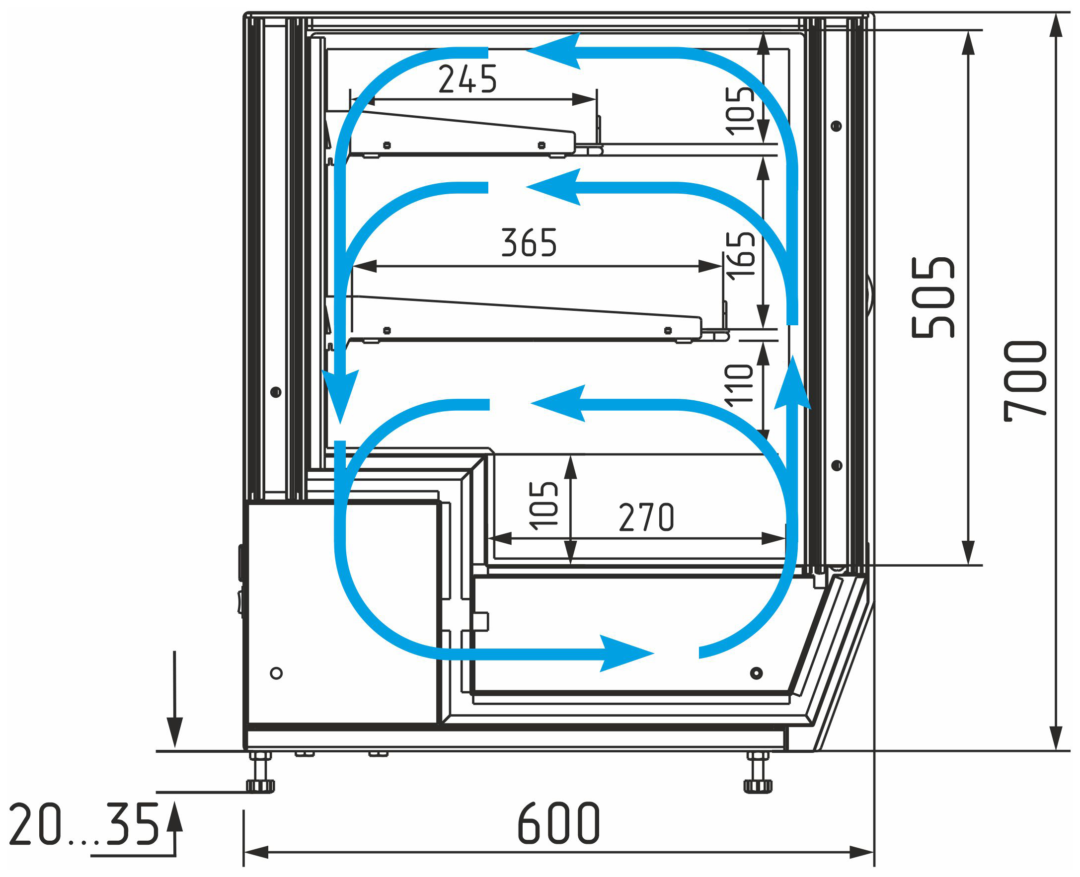 Каталог оборудования Холодильное оборудованиеВитрины настольныеВитрина холодильная настольная Carboma AC59 VM 0,9-1 (слайдер) (0430) Витрина холодильная настольная Carboma AC59 VM 0,9-1 (слайдер) (0430) Код товара: 063-687 Поделиться: WhatsAppTelegram СравнитьДобавить в КПВ избранное 0 117 630 ₽ В корзину 0 шт Под заказСамовывоз сегодня бесплатно Взять в кредит Купить в лизинг Получить консультацию в WhatsApp Описание Характеристики Отзывы 0 Инструкции 2 Витрина холодильная настольная Carboma AC59 VM 0,9-1 (слайдер) (0430) — это универсальная охлаждаемая витрина для демонстрации и кратковременного хранения кондитерских изделий, десертов, салатов и напитков. Идеально подходит для небольших кафе, баров и заведений общественного питания. Модель оснащена закалёнными боковыми стеклопакетами, раздвижными фронтальными и задними дверцами, а также двумя охлаждаемыми полками-решётками с ограничителями. Может устанавливаться на столешницу или встраиваться в барную стойку. Корпус выполнен из стали с ППУ-теплоизоляцией, а рабочая поверхность — из нержавеющей стали. Ключевые особенности: Динамическая система охлаждения — равномерное распределение температуры Компрессор европейского производства — высокая надёжность Электронный блок управления Carel — точный контроль температурного режима Выпариватель конденсата — исключает необходимость ручного слива Возможность установки полок под углом 5° — улучшенная презентация Фронтальные и задние раздвижные дверцы — удобный доступ с обеих сторон Боковая LED-подсветка — подчёркивает структуру десертов и изделий Современный кубический дизайн — стильный внешний вид Регулируемые ножки-опоры — устойчивость на любых поверхностях Настольное или встраиваемое размещение — гибкость установки Стабильный температурный режим — для безопасного хранения продуктов Глубина нижней зоны выкладки: 270 мм Глубина полок: 365 мм (верхняя) / 245 мм (нижняя) Длина нижнего поддона: 866 мм Максимальная высота выкладки продуктов: нижний поддон — 150 мм, полки — 100 мм Температура окружающей среды: от 12 до 25 °C Относительная влажность воздуха: до 60% Carboma AC59 VM 0,9-1 (слайдер) (0430) — это надёжная и эргономичная охлаждаемая витрина с удобным доступом с обеих сторон, которая обеспечит качественную демонстрацию и сохранность продукции в кафе, барах и точках продаж.Изображение товара, представленного на фото, может отличаться от его фактического вида. Показать все Габаритные размеры900×600×735 ммДиапазон рабочей температурыот +4 до +10 °CДлина900 ммГлубина600 ммВысота735 ммРазмещениеГоризонтальная Площадь выкладки0,73 м²Полезный объем витрины0,09 м³Тип охлажденияДинамическое Климатический класс3 ХладагентR290, R600a Напряжение220 ВЭнергопотребление в сутки0,5 кВтКоличество полок2 штГабариты в упаковке1050×750×890 ммВес нетто89 кгВес брутто126 кгБрендПолюсВсе витрины настольные CarbomaВсе холодильные настольные витриныВсе стеклянные настольные витрины Оставить отзыв Еще никто не оставил отзыв на этот товар Брошюра на Carboma AMRA AC59 VM.pdfСхема Carboma AMRA AC59 VM 0,9-1 Slider.jpg Похожие товары Перейти в каталог В наличии 116 000 ₽ Витрина кондитерская Carboma KC70 VM 0,6-1 Light (ВХСв-0,6д Carboma Cube Техно) 9006-9005 Под заказ 119 200 ₽ Витрина кондитерская Carboma K70 N 1,3-2 Light Bread Паттерн (0105 Венге) хлебная, без стекла Под заказ 174 749 ₽ Витрина кондитерская Chilz VETE OFT 90 серый матовый, шлифованная нержавейка Под заказ 137 400 ₽ Витрина кондитерская Carboma K70 V